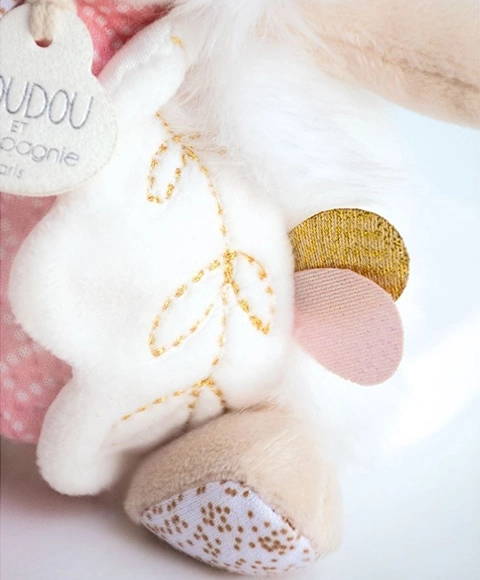 Designul pastel elegant și finisarea de calitate respectă standardele europene CE. Jucăria se întreține ușor – este suficient să fie spălată la 30 °C și uscată natural sau la temperatură scăzută. O idee excelentă de cadou pentru nașterea bebelușului sau de Crăciun.