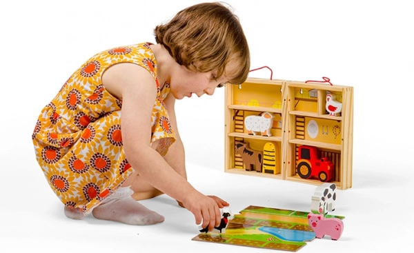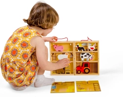 Copiii pot descoperi lumea fermei, pot numi animăluțele și pot crea propriile povești. Setul dezvoltă vocabularul, motricitatea și abilitățile sociale în timpul jocului împreună. Datorită culorilor vii și detaliilor autentice ale fermei, jocul este în mod natural atractiv și distractiv pe termen lung.