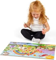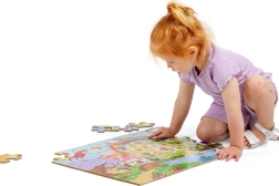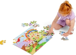 Puzzle-ul de podea Bigjigs Toys Lumea fanteziei le oferă copiilor o intrare jucăușă în tărâmul magiei și al ființelor supranaturale. Piesele mari, ușor de prins, din lemn rezistent, facilitează asamblarea, dezvoltă coordonarea mână–ochi și îi învață să recunoască culorile și formele. Primul puzzle mai mare ideal pentru micii exploratori.