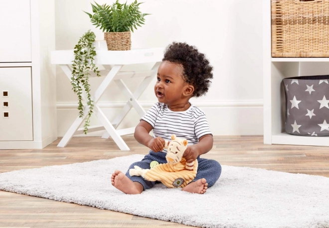 Datorită corpului plat de tip „păturică”, se prinde ușor chiar și de cele mai mici mânuțe, iar greutatea redusă este perfectă pentru pătuț, cărucior și călătorii. Spălarea manuală practică ușurează întreținerea și prelungește durata de viață a jucăriei preferate.