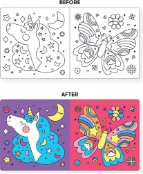 Această încântătoare cărticică pentru baie va deveni partenerul preferat al fiecărui copil la ora băii. Cartea este concepută astfel încât imaginile să se schimbe atunci când sunt scufundate în apă, lucru care îi va entuziasma pe copii și îi va inspira să descopere lucruri noi. Paleta de culori vibrante și unicornii fermecători le atrag atenția, fiind ideală pentru copii încă de la vârste fragede.