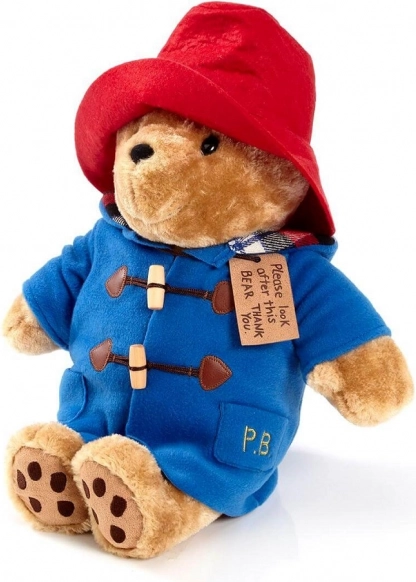Acest ursuleț, îmbrăcat în palton albastru cu catarame adevărate și pălărie roșie caracteristică, este un cadou excelent pentru toți micii fani ai ursulețului Paddington. Materialul său de pluș asigură că va deveni companionul preferat pentru îmbrățișări și joacă.