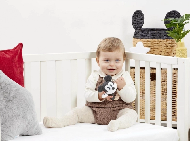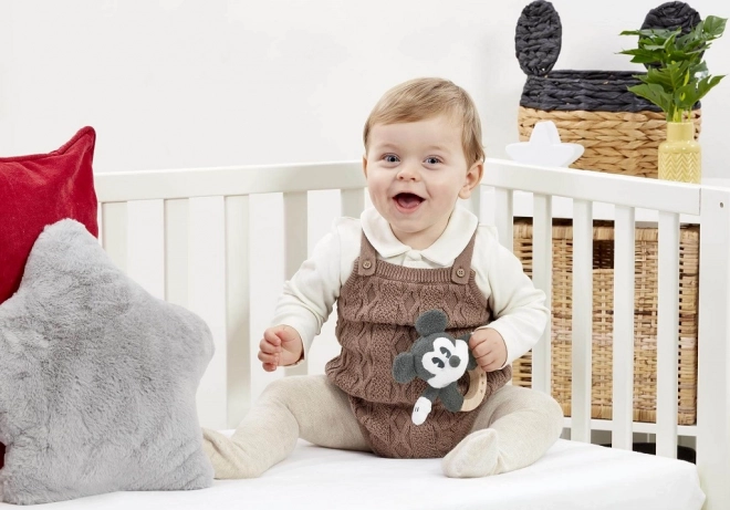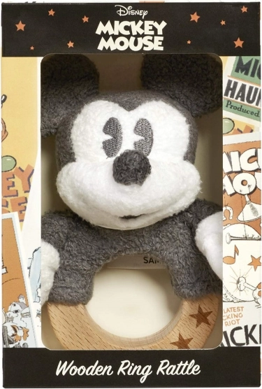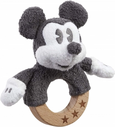 Descoperiți jucăria ideală pentru început: o zornăitoare cu iconicul MICKEY MOUSE pe un inel solid din fag, decorat cu steluțe. Datorită plușului moale și lemnului neted, este sigură, plăcută la atingere și susține abilitățile timpurii.