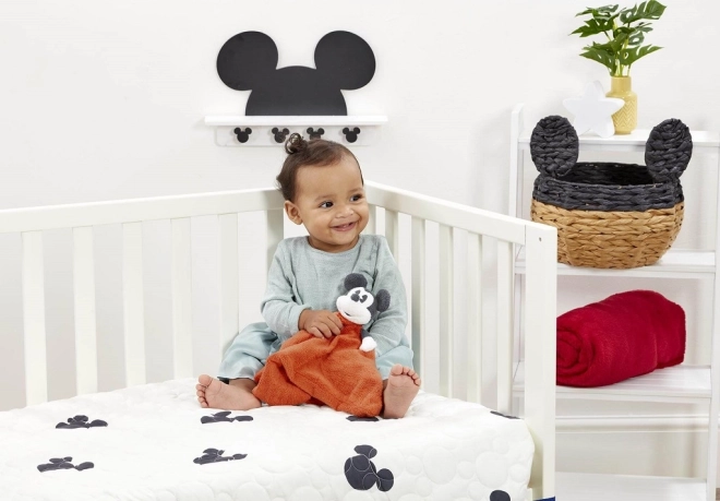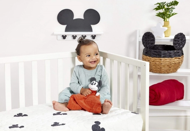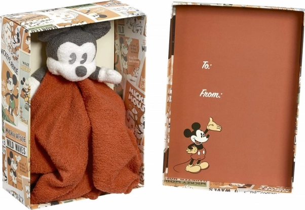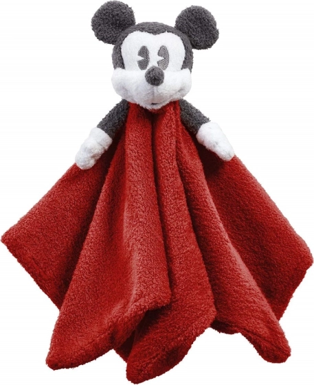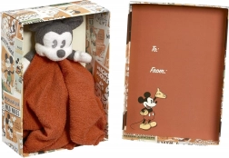 Oferă bebelușului confort moale și siguranță cu doudou-ul MICKEY MOUSE de 30 cm. Acest companion super moale cu păturică roșie liniștește copiii, sprijină percepția senzorială și dezvoltarea motricității fine. Ideal pentru pătuț, cărucior și scaun auto, excelent ca cadou pentru nou-născut în frumoasa cutie cadou vintage.