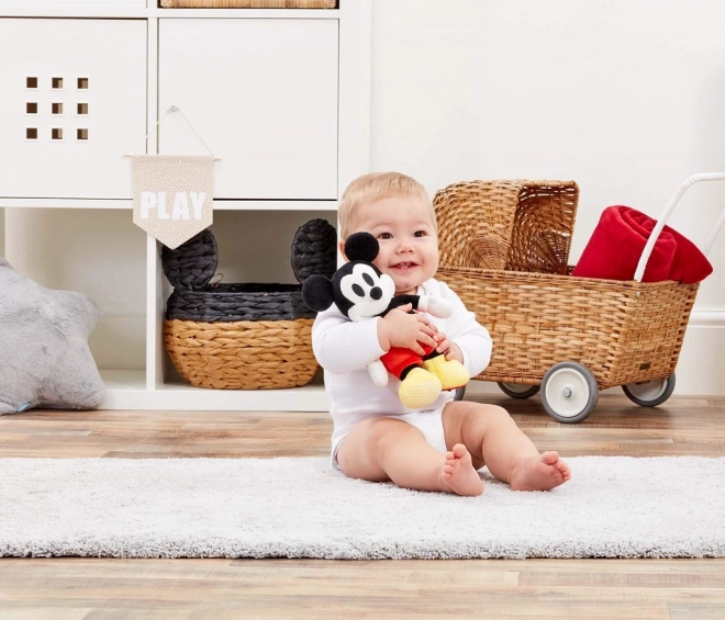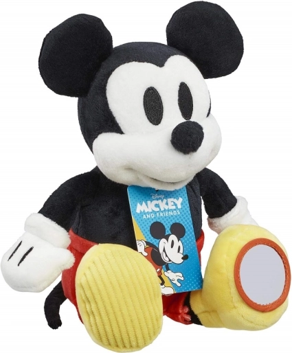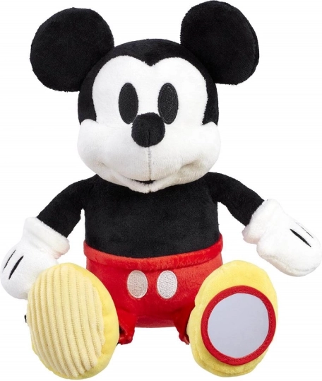 Aduceți acasă farmecul personajului clasic cu MICKEY MOUSE de pluș Activity. Pantalonii scurți roșii iconici și pantofii galbeni sunt completate de elemente care invită copiii la explorare: șiret texturat pe pantoful drept și oglindă circulară sigură pe cel stâng. Datorită materialului super moale, este ideală pentru îmbrățișat și pentru primele jocuri.