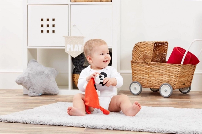 Nodurile tactile din colțuri și urechile iconice susțin dezvoltarea motricității fine și curiozitatea celor mici.