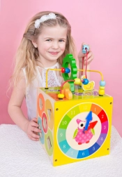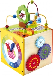 Cuba motrică multifuncțională de la marca Bino este o jucărie din lemn de calitate pentru cei mai mici, care dezvoltă motricitatea fină, gândirea logică și concentrarea. Oferă activități diferite pe fiecare față, inclusiv aruncarea și introducerea formelor. Este realizată din lemn de calitate și vopsită cu culori sigure care respectă normele UE.