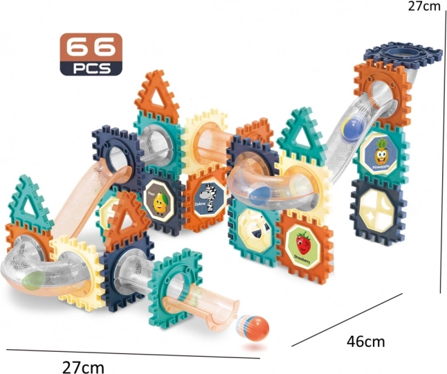 Pistă cu bile creativă cu 66 de piese pentru construcții nesfârșite și distracție. Copiii vor iubi crearea propriilor trasee, jocurile interactive și posibilitatea asamblării repetate, care dezvoltă imaginația, gândirea logică și răbdarea.