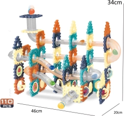Descoperiți lumea distracției cu setul de construcție cu bile, care oferă 110 piese diferite pentru crearea unor piste dinamice și scenarii tridimensionale. Copiii pot experimenta cu forme și trasee, pot construi structuri originale și pot organiza curse cu bile sau se pot juca domino.