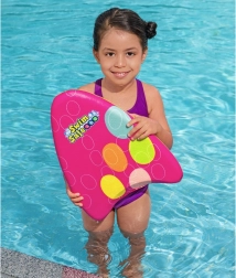 Placa este fabricată din spumă durabilă, care oferă flotabilitate și stabilitate ridicată. Datorită formei sale ergonomice și graficii colorate, este ajutorul ideal în lecțiile de înot.