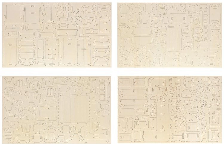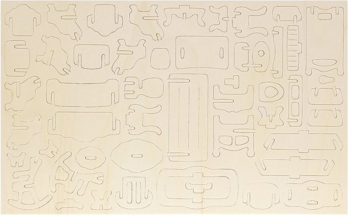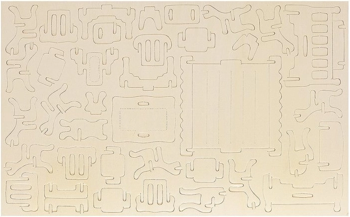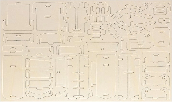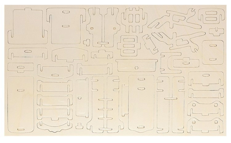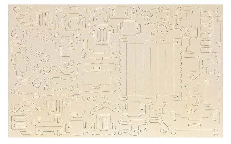 Lemnul natural, nefinisat, poate fi ușor vopsit în stilul propriu. Pachetul include 3 hârtii abrazive pentru finisarea netedă a marginilor după desprindere din plăci. Construcția ușoară este ideală pentru călătorii – mobilierul se poate asambla și dezasambla, sau poate fi lipit definitiv cu adeziv pentru lemn.
