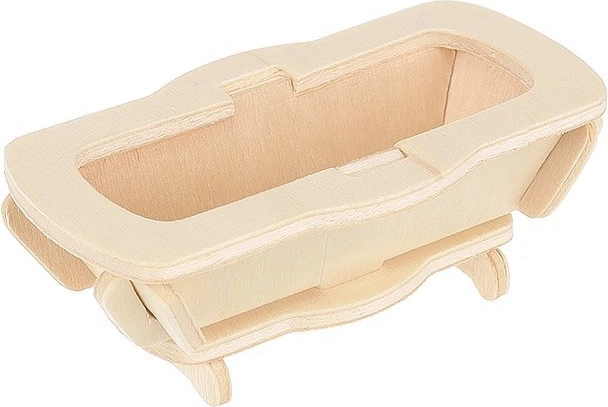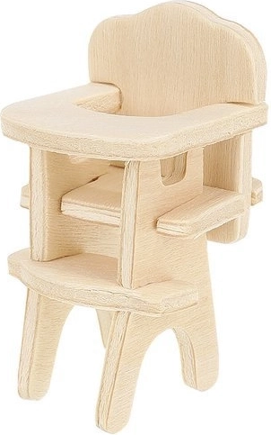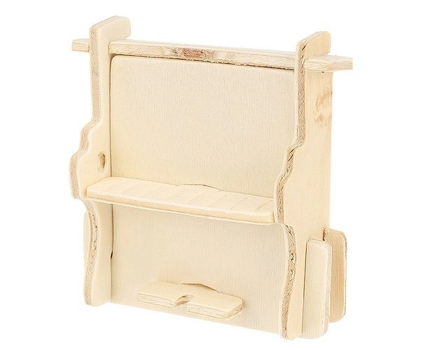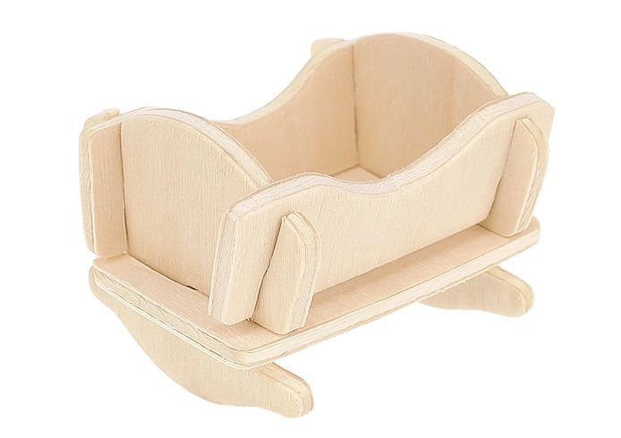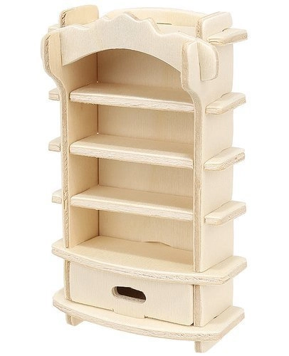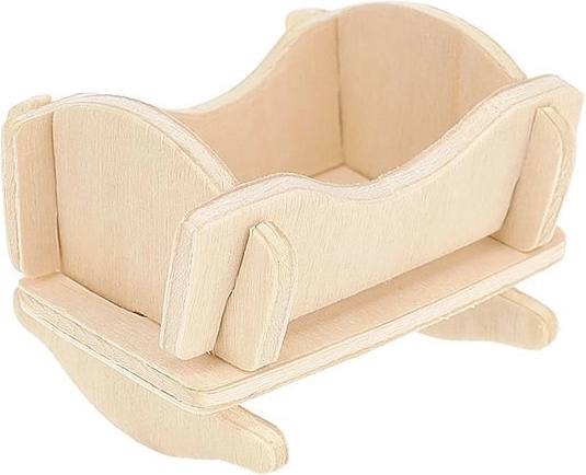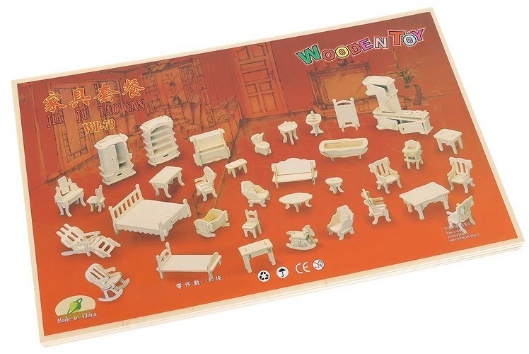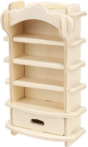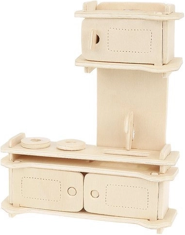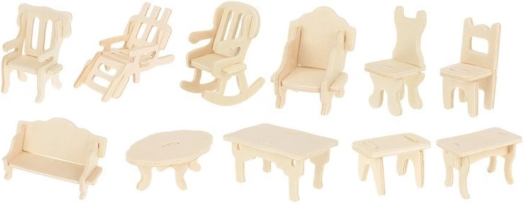 Acest set universal de mobilier din lemn transformă orice căsuță de păpuși într-un cămin complet echipat. Piesele se asamblează ca un puzzle 3D din lemn, astfel încât copiii își antrenează îndemânarea și imaginația. Elementele mobile (de ex. ușile care se deschid ale șifonierului) fac jocul mai realist și mai distractiv.