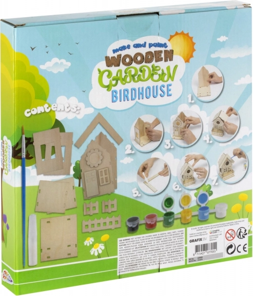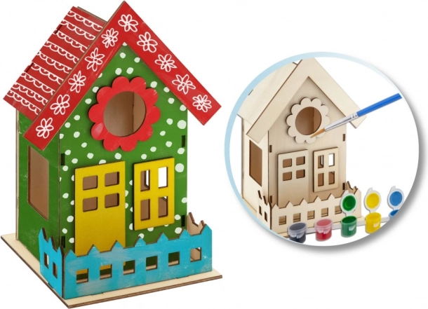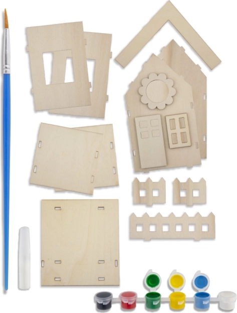 Creați-vă propriul colțișor pentru păsări cu acest set creativ. Căsuța pentru păsări din lemn 3D se asamblează ușor și se decorează cu vopselele incluse. Pachetul conține căsuță din lemn, 6 culori, adeziv și pensulă – tot ce aveți nevoie pentru creații distractive în grădină sau acasă.