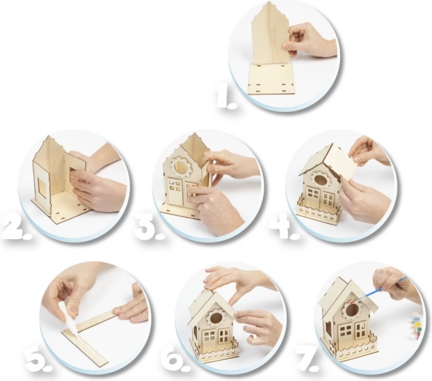 Acest set creativ este ideal pentru activități în familie, dezvoltarea imaginației copiilor și apropierea de natură. Căsuța pentru păsări din lemn 3D se asamblează, se lipește și se decorează ușor, după propria imaginație. Căsuța finalizată poate fi amplasată pe balcon, în grădină sau pe terasă, spre bucuria micilor cântăreți.