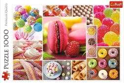 Puzzle de 1000 de piese care prezintă un colaj de imagini cu bomboane colorate și dulci. Puzzle-ul poate fi o decorațiune de perete în bucătărie și sufragerie, precum și în camera copiilor. După asamblare, rezultă o imagine cu dimensiunea de 68x48 cm. Calitatea înaltă, intensitatea culorilor și siguranța puzzle-ului sunt asigurate de hârtia calandrată cu efect reflexiv, acoperită cu vopsele ecologice de uz alimentar.
