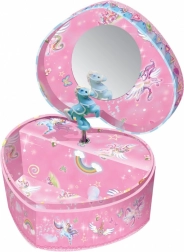 Unică cutiuță muzicală în formă de inimă cu motiv de unicorn cântă o melodie clasică, care luminează fiecare moment. La deschidere, figurina din interior începe să se rotească, în timp ce se aude o melodie frumoasă. Plăcerea vizuală este amplificată de prezența unei oglinzi și a unui spațiu pentru a stoca mici obiecte.