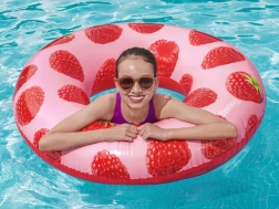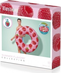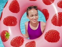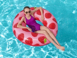 Bucură-te de vară cu colacul de înot Bestway, cu proaspătă aromă de zmeură și imprimeu fructat stilat. Materialul rezistent, valva de siguranță pentru umflare și dezumflare ușoară și capacitatea de până la 90 kg îl fac accesoriul perfect pentru piscină și plajă.