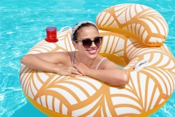 Bucură-te la maximum de vară cu colacul gonflabil Bestway Comfort Plush Deluxe, cu diametrul de 118 cm. Datorită suprafeței catifelate Comfort Plush, spătarului integrat pentru cap și spate, suportului pentru băutură și valvei duble pentru umflare și dezumflare rapidă, acest colac oferă confort și stil la superlativ. Culorile se aprind și se intensifică după imersie în apă, astfel încât vei fi de neconfundat la piscină sau pe plajă.