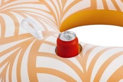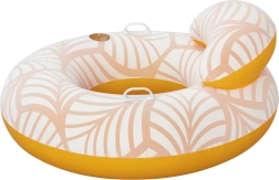 Construcția practică cu valvă dublă de tip rapid permite umflare și dezumflare ușoară, iar cele două mânere robuste asigură stabilitate la urcare și în timpul plutirii. Colacul se pliază și se depozitează ușor, fiind gata pentru orice aventură de vacanță. Designul portocaliu cu imprimeu tropical evidențiază culorile după imersie și oferă un aspect proaspăt de vară.