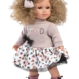 Păpușă cu fustă florală și pulover „GOOD”, perfectă pentru jocurile copiilor.