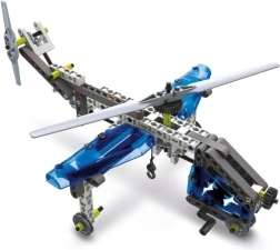 Îți oferim peste 10 modele și 200 de piese pentru asamblare. Include tije pentru montarea gondolelor, panouri, elice, roți dințate, scripeți și articulații.