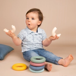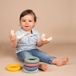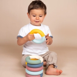 Grație formei speciale a inelelor, copiii exersează cu ușurință motricitatea fină și coordonarea mâinilor în timp ce se joacă.
