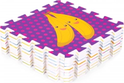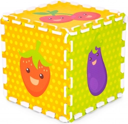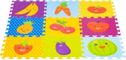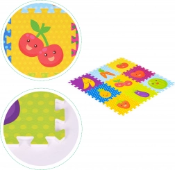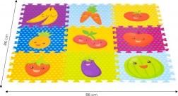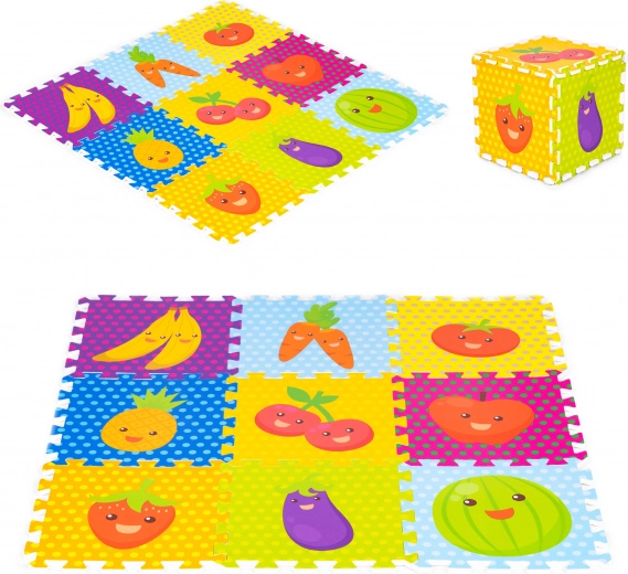 Covor de joacă din spumă IPLAY este proiectat având în vedere siguranța și confortul copiilor. Include imagini cartonate cu fructe și legume care nu doar decorează, dar și educă. Covorul este potrivit nu doar pentru joacă, ci și pentru învățarea mersului.