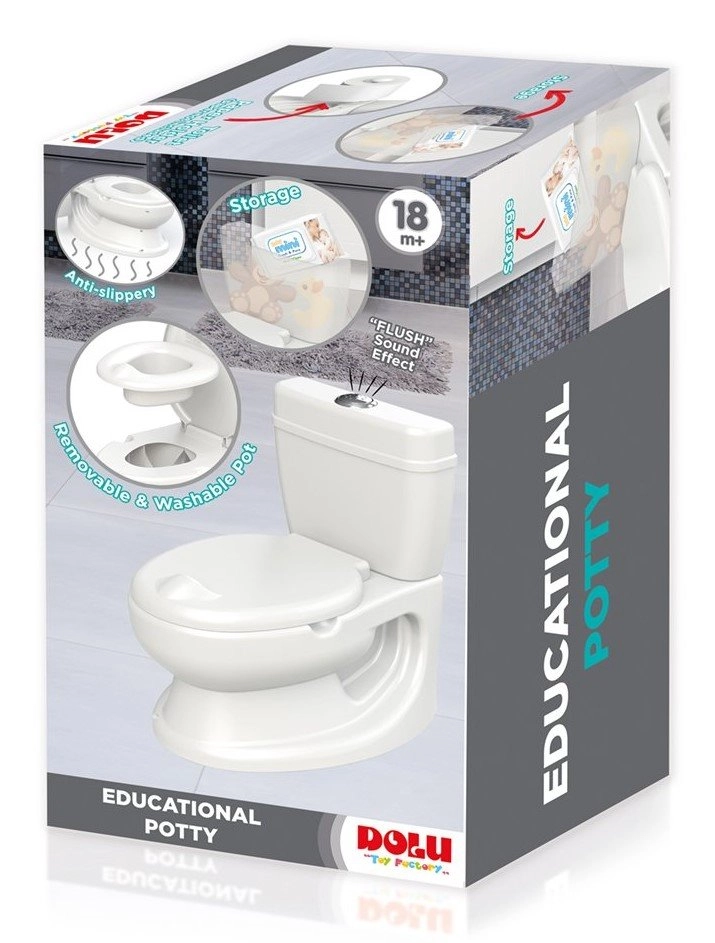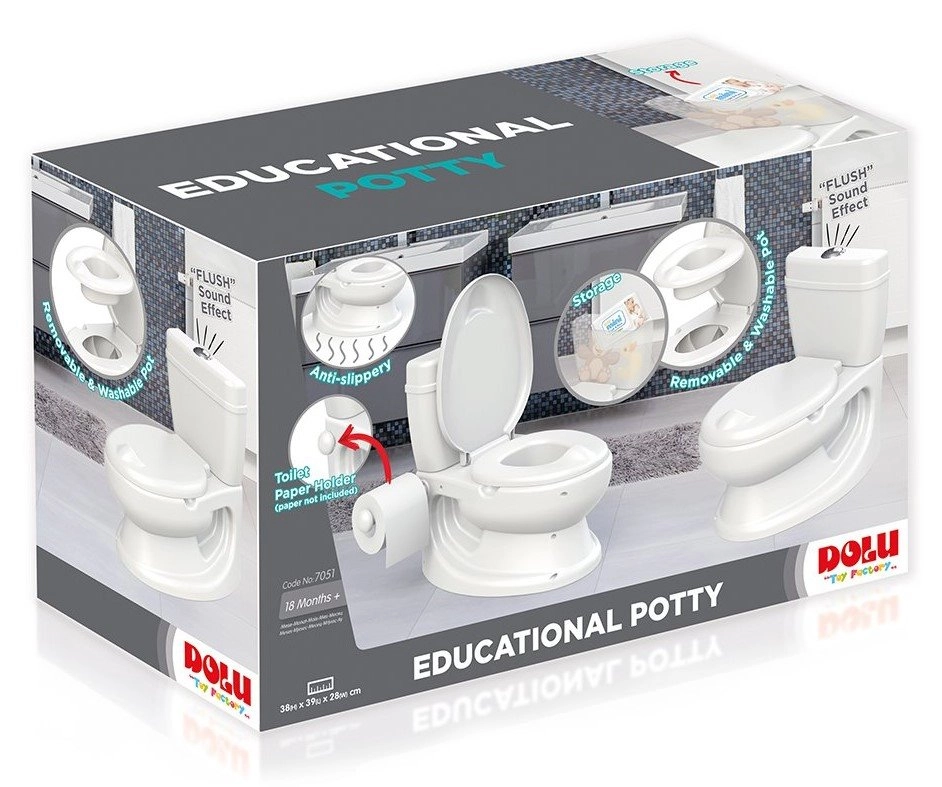 Oliță realistă în formă de toaletă, care îi ajută pe copii să treacă de la scutec la toaletă într-un mod distractiv și motivant. Oferă sunet de spălare, suport pentru hârtie igienică, bol detașabil pentru curățare ușoară și bază antiderapantă pentru utilizare în siguranță.