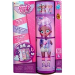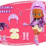 Phoebe iubește culoarea mov, are păr mov, un combinezon galben cu mov și o jachetă metalică, bocanci militari și șosete înalte! Este completată de o geantă mov, o bentiță inspirată de dinozauri și un colier BFF unic.