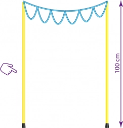 Acest set pentru baloane mari este ideal pentru copii și adulți care iubesc magia baloanelor de săpun. Doar înmuiați sfoara în soluția specială și, cu mișcări ușoare, creați baloane uriașe. Lungimea sforii este de 300 cm, iar a mânerelor de aproximativ 100 cm. Nu include recipient pentru soluție. Baloanele colorate și tunelurile cu siguranță vor fascina fiecare mic explorator. Distracția veselă și plină de râsete este garantată!