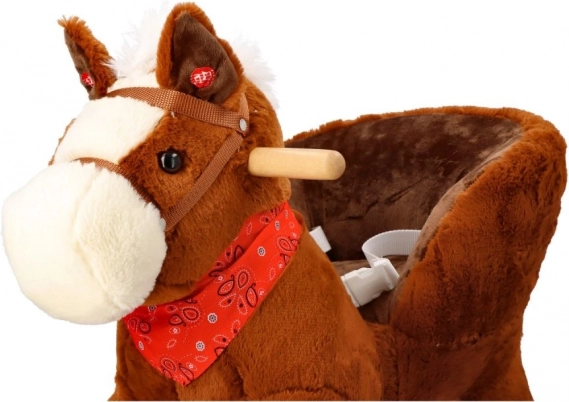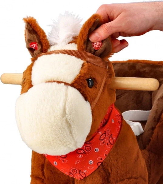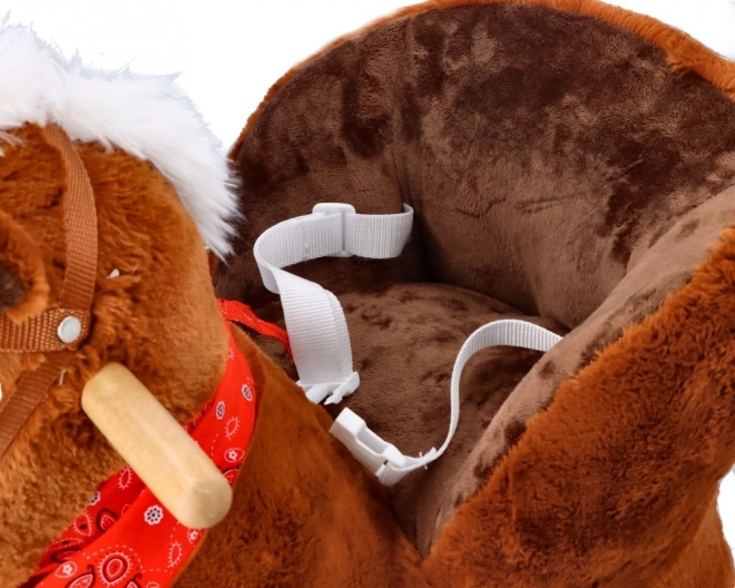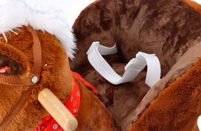 Creat cu accent pe siguranță și confort, are un scaun moale cu o adâncime de aproximativ 20 x 14 cm, care permite o ședere confortabilă în timpul balansului. Împodobit cu o coamă albă și un șal roșu, acest căluț aduce nu doar distracție, ci și stil.