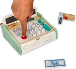 Casa de marcat pastel din lemn este un partener ideal pentru copiii dumneavoastră în jocul de-a magazinul. Această jucărie este proiectată pentru a simula experiențele reale de magazin, ajutând la dezvoltarea abilităților sociale și cognitive.