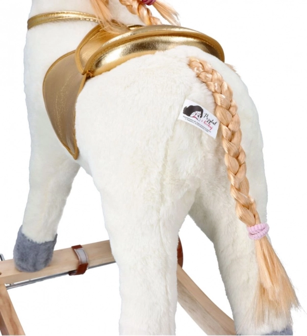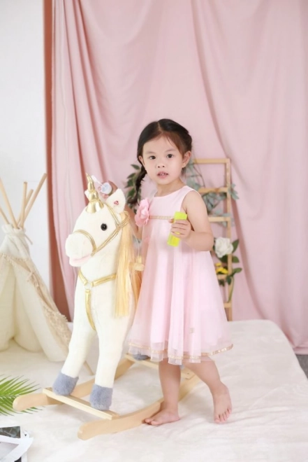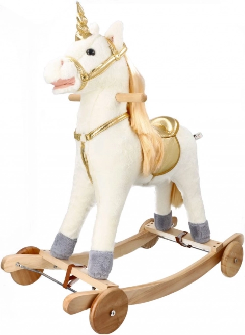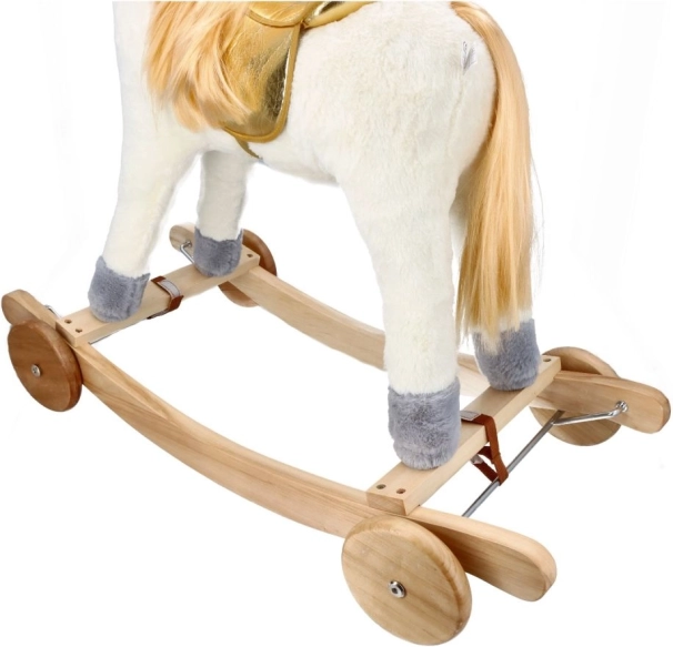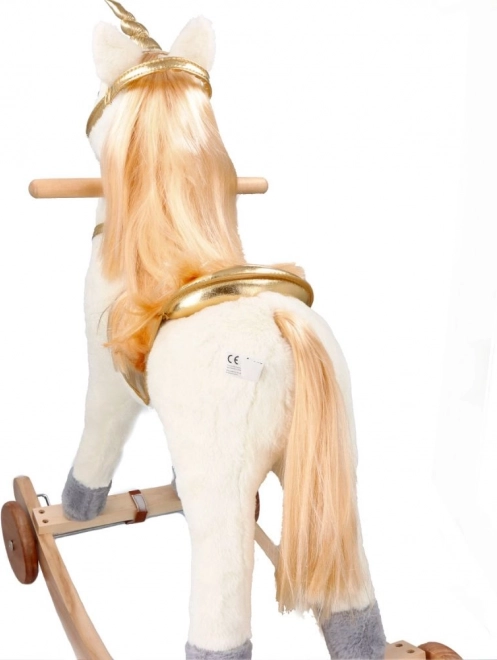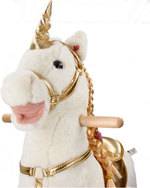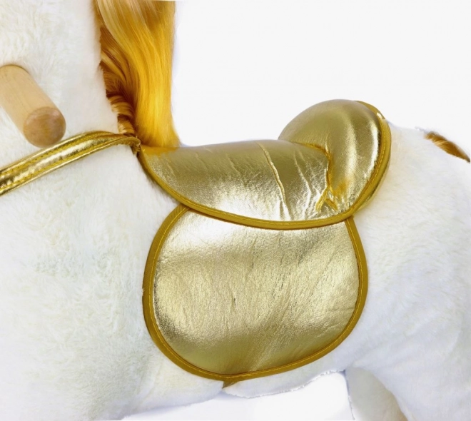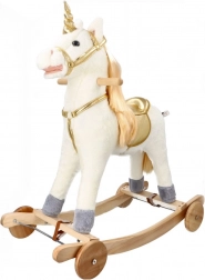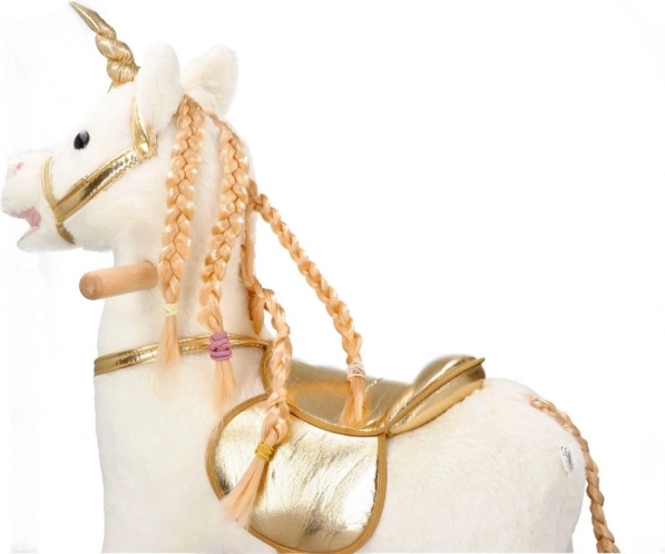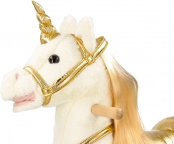 Descoperă emoția de a călări acest frumos unicorn de aur. Cu un pluș moale și plăcut, oferă experiențe confortabile și distractive pentru copiii tăi. Construcția din lemn stabilă și elementele aurite elegante aduc o atmosferă magică fiecărui joc.