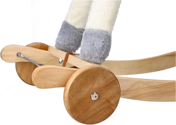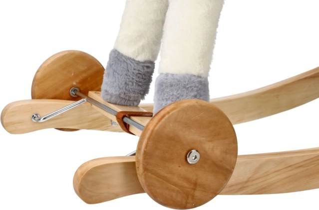 Leagănele de lemn și roțile oferă echilibru și siguranță în timpul jocului.