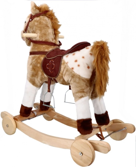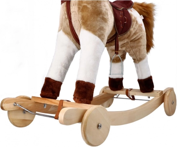 Caluțul balansoar Mustang cu roți oferă o experiență realistă de călărie pentru micii aventurieri. Datorită combinării lemnului cu textile, calul este atât robust, cât și moale.
