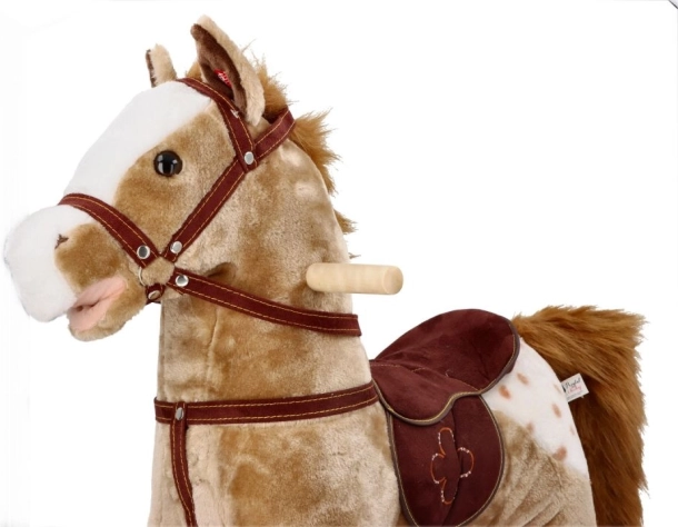 Datorită încorporării robuste din lemn și materialelor textile moi, calul oferă un joc sigur și confortabil.