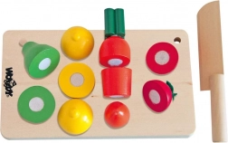 - Conținutul pachetului: 1 tăbliță din lemn, 1 cuțit din lemn, 12 piese de fructe și legume.