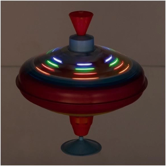 Descoperiți farmecul unei jucării tradiționale într-o nouă formă. Acest titirez metalic cu suport se activează printr-o simplă apăsare a pistonului superior. În timpul rotației, emite un sunet fin, liniștitor, iar diodlele LED integrate se aprind, creând efecte luminoase atractive îndrăgite de copii.