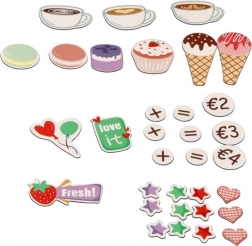 - Cafenea realistă și vitrină de înghețată – butoane, taste și accesorii pentru „prepararea cafelei”, deserturi și cupe de înghețată.