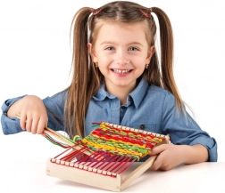 Jocul cu războiul de țesut susține motricitatea fină, răbdarea și gândirea creativă. Setul include tot ce este necesar pentru primele proiecte, astfel încât copiii pot începe să creeze imediat. Materialul sigur și certificarea CE asigură o utilizare lipsită de griji.