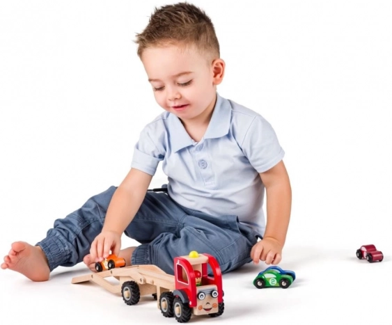 Acest transportor din lemn de calitate îi va încânta pe toţi micii şoferi. Suprastructura pe două niveluri permite încărcarea şi descărcarea facilă, astfel încât copiii îşi pot dezvolta coordonarea, răbdarea şi imaginaţia. Datorită construcţiei rezistente, jucăria este grozavă pentru joaca zilnică acasă sau la grădiniţă.