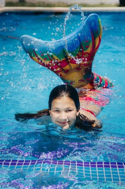 Modelul multicolor, expresiv, al cozii adaugă fiecărui înot farmecul sirenei și arată grozav atât în fotografii, cât și în apă.