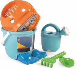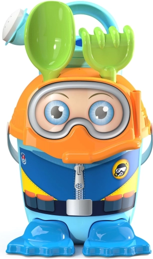 - Găleată, sită în formă de cap de scafandru, 2 forme în formă de înotătoare de scafandru, stropitoare, lopățică, greblă
