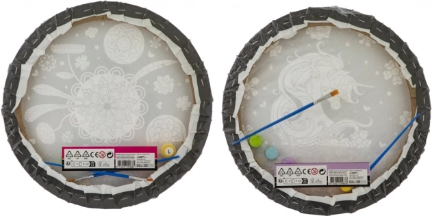 Descoperă creativitatea relaxantă cu un set practic pentru pictură după numere în format tablou rotund cu diametrul de 30 cm. În pachet găsești tot ce ai nevoie: 6 acuarele și 2 pensule (lată și rotundă). Poți alege dintre 2 motive – mandală și unicorn, ideale atât pentru începători, cât și pentru avansați.