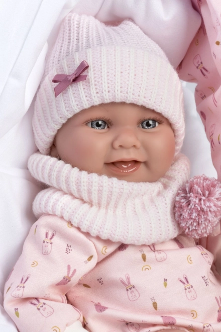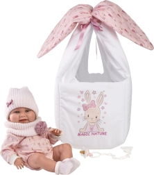 Această păpușă realistă Llorens New Born fetiță oferă o redare fidelă a unui bebeluș, cu corp din vinil integral pe care se vede fiecare detaliu adorabil. Datorită materialului rezistent la apă, păpușa poate fi îmbăiată cu grijă (evitați udarea genelor). Brațele și picioarele sunt prinse pe articulații, astfel încât păpușa este poziționabilă și poate sta singură în șezut.