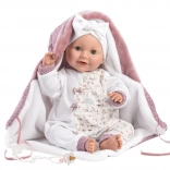 Această păpușă realistă Llorens New Born este concepută pentru jocuri autentice de rol. Corpul textil moale este plăcut la atingere, iar membrele din plastic, articulate, permit poziționare naturală și stat în șezut. La apăsarea pieptului, păpușa rostește „mama”, „tata” și pornește un plâns fidel, care încurajează jocul empatic.
