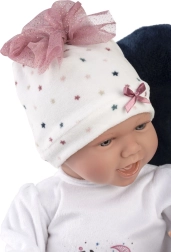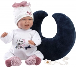 Păpușa-bebeluș adorabilă de la Llorens, cu înălțimea de 42 cm, impresionează prin aspectul realist, trupul textil moale și funcția de plâns – la apăsarea burticii spune „mama, tata”. Include o înfofolitoare cu urechiușe pufoasă, ideală pentru alint, joacă și ca dar.