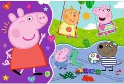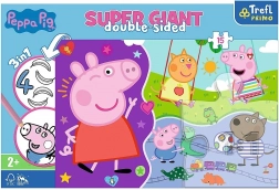 Acest puzzle uriaș cu tema Peppa Pig oferă copiilor o triplă doză de distracție. Piesele mari și rezistente se prind ușor cu mânuțele, iar grafica simplă și colorată, cu personaje mari, îi motivează pe cei mici să asambleze din nou și din nou. Partea din spate ascunde o planșă de colorat și un joc simplu de colorat, astfel încât copiii își exersează culorile, concentrarea și imaginația.