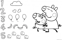 Partea alb-negru cu imagini și numere îi ajută pe copii să exerseze numărarea de la 1 la 5 și recunoașterea obiectelor în timp ce colorează.