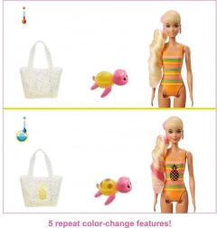 Experimentați bucuria rozpachetării și surpriza cu păpușa Barbie Color Reveal, plină de spumă și mister! Această păpușă la modă vă așteaptă să-i descoperiți look-ul ascuns.